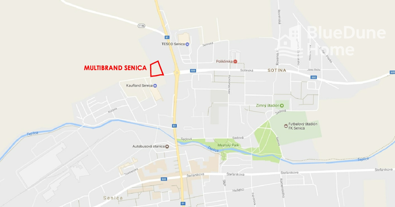 Rovinatá, mierne svahovitá trávnatá parcela sa nachádza v katastri mesta Senica na Obchodnej ulici, v blízkosti obchodného domu Kaufland, v kontakte s cestným telesom v urbanizovanom a stabilizovanom území.